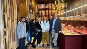 وشملت الزيارة جولة حصرية في *قصر “بالاتزو موتشينيغا” Palazzo Moceniga Museum*، الذي يضم *معرضًا تاريخيًا فريدًا* يحتوي على ما يقارب 500 زجاجة عطرية نادرة، تجسد تاريخ فن العطور الممتد لآلاف السنين.