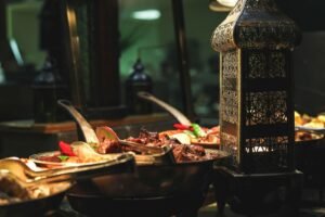 وتبدأ تجربة الإفطار بتناول الأطباق الرمضانية التقليدية مثل التمر والعصائر المنعشة، يليها تشكيلة مختارة من المقبلات العربية والسلطات بما فيها الحمص والمتبل وورق العنب والفتوش والتبولة، بالإضافة إلى الأطباق الموسمية مثل سلطة الشوندر مع جبنة فيتا والفستق الحلبي والكوسا المشوية مع الثوم وجبنة ريكوتا وروبيان تندوري مع تتبيلة التمر الهندي.