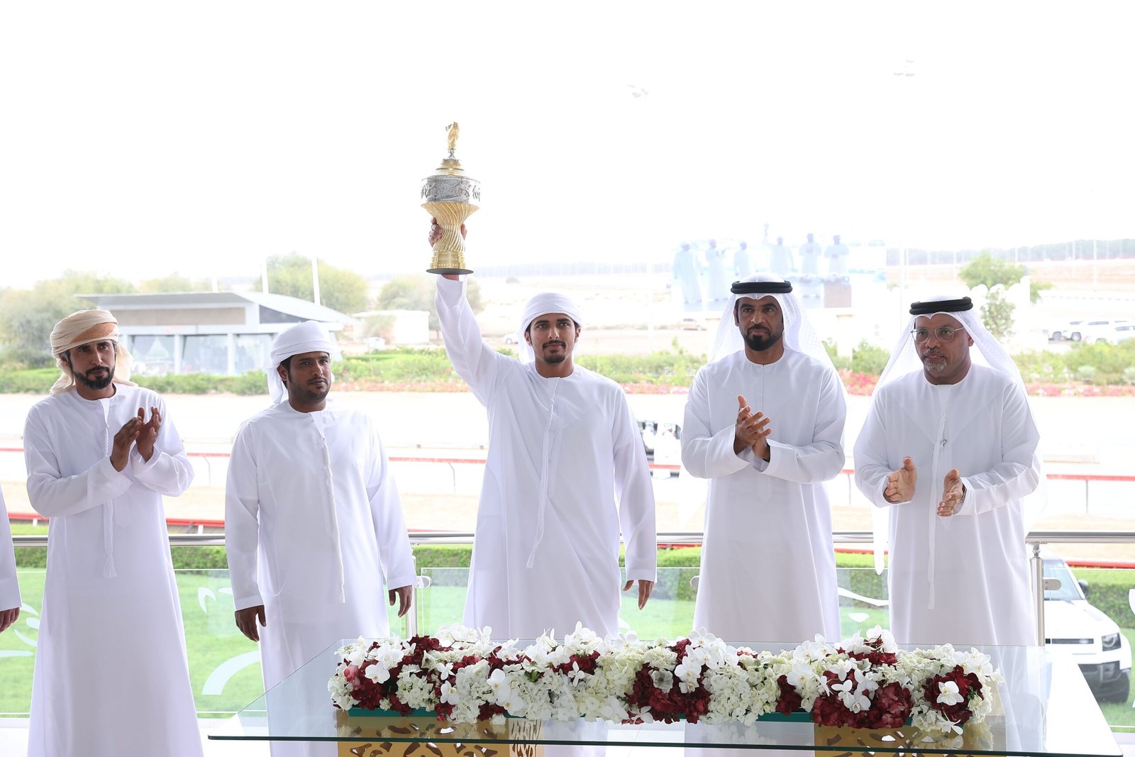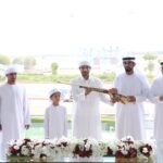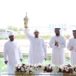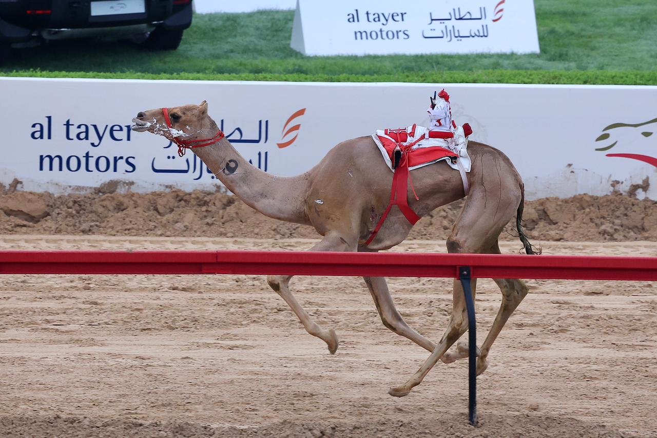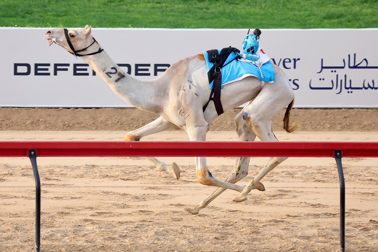 توّج علي سعيد بن سرود التنفيذي لنادي دبي لسباقات الهجن، وعبدالله أحمد فرج مدير إدارة الإعلام والتسويق والفعاليات وعلاقات الشركاء بالنادي، الفائزين برموز سن اللقايا لهجن أصحاب السمو الشيوخ، وذلك على منصة ميدان المرموم عقب ختام الشوط الرابع عشر، ضمن مهرجان ختامي المرموم 2026.
