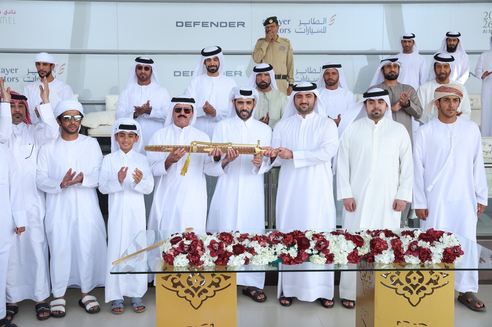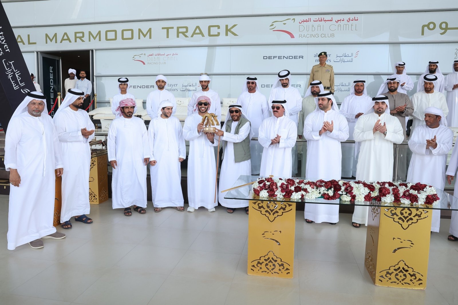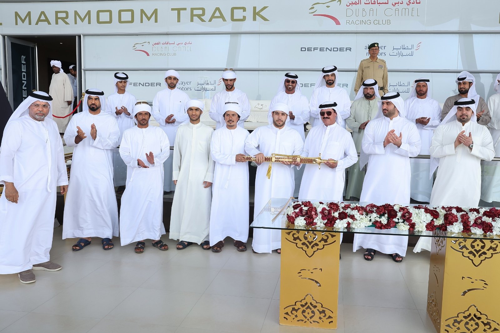 وقبيل انطلاق مراسم تتويج الأبطال، قام الشيخ محمد بن مكتوم بن راشد آل مكتوم، رئيس مجلس إدارة نادي دبي لسباقات الهجن، بتكريم شركة (الطاير للسيارات) الشريك الرسمي لمهرجان ختامي المرموم 2026، حيث تسلّم التكريم السيد حميد مطر الطاير، الممثل الرسمي للشركة، تقديراً لدورهم الرائد وشراكتهم الاستراتيجية في إنجاح هذا العرس التراثي الكبير.