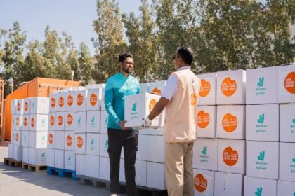 موظفو ديليفرو وبنك الإمارات للطعام يجهّزون ويوزّعون صناديق مواد غذائية على جميع السائقين ضمن أسطولها